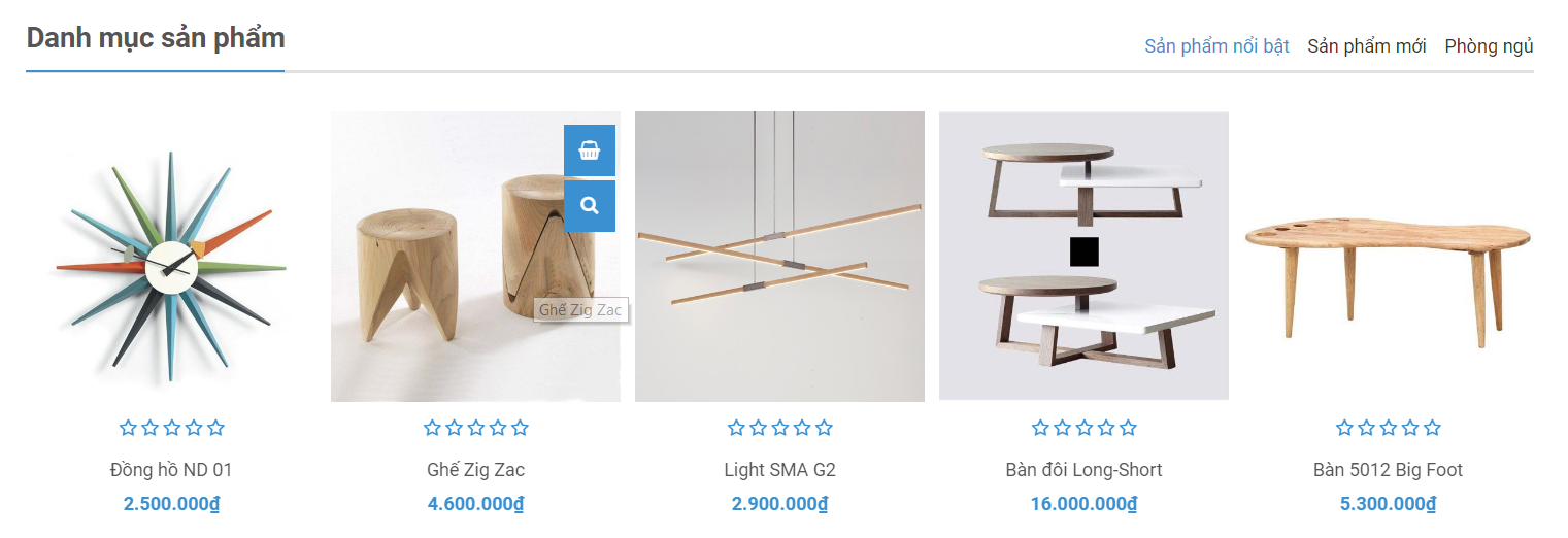 Module các tab sản phẩm: mỗi module được thiết kế theo kiểu ajax giúp hiển thị nhiều sản phẩm nhưng không làm chậm tốc độ truy cập website.
