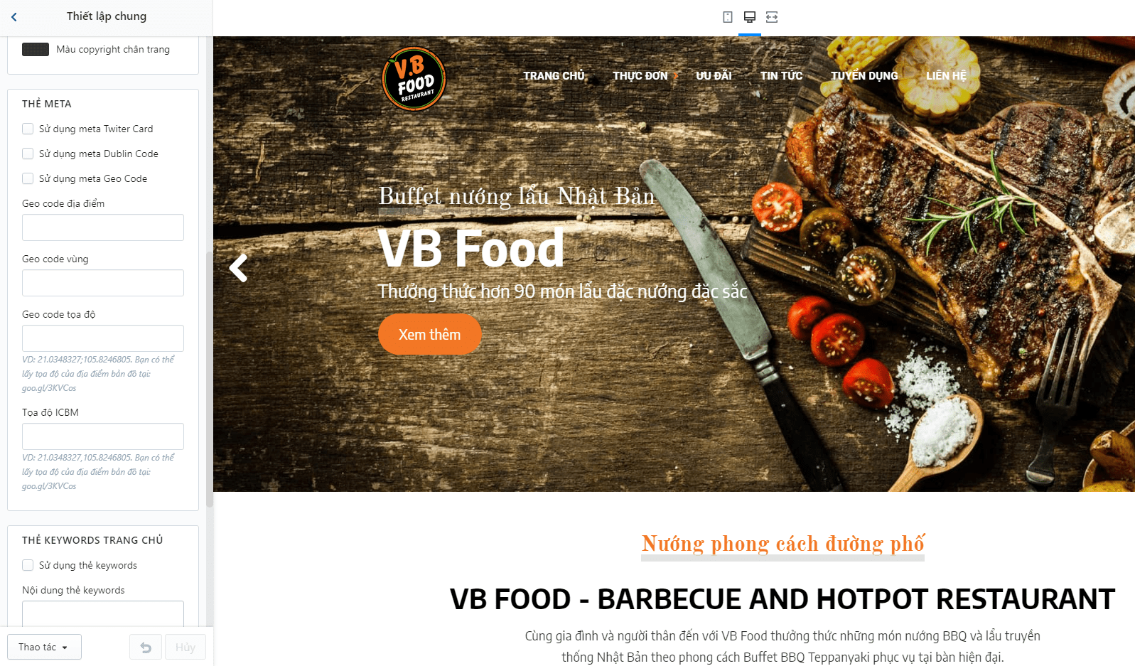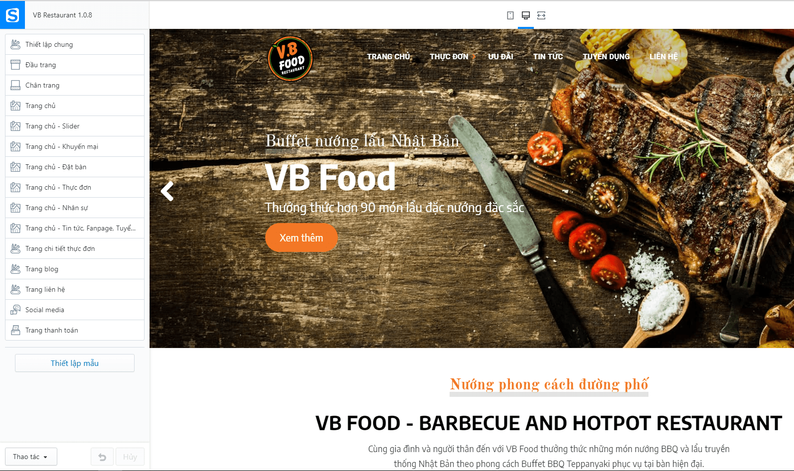 Template, Giao diện mẫu VB Restaurant